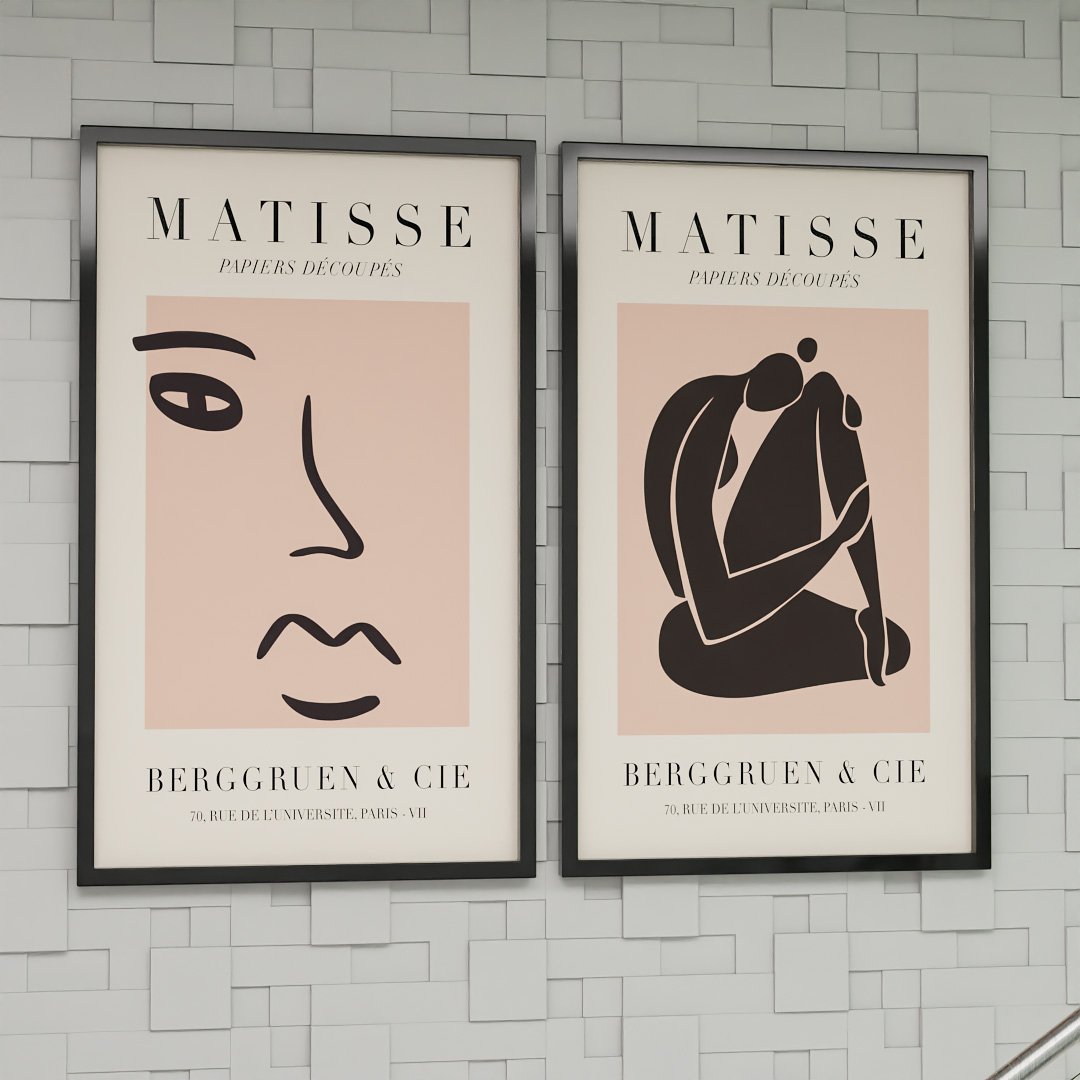 - Tons neutros de base: paredes em branco, bege ou cinza claro valorizam as estampas de Matisse sem competir.