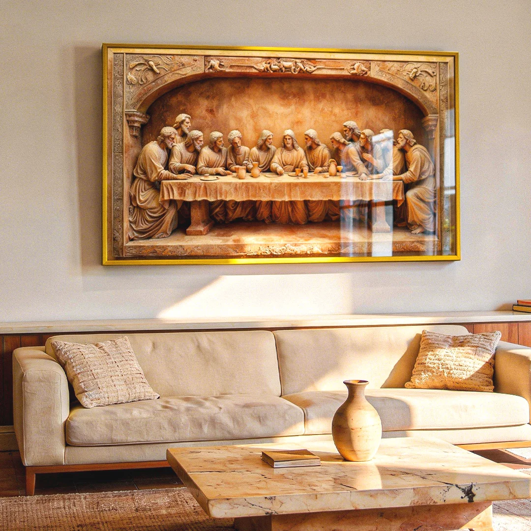 - Sala de Estar: A sala de estar é um ambiente comum de socialização, e o quadro da Santa Ceia pode ser um ponto focal que transmite a ideia de acolhimento e espiritualidade.